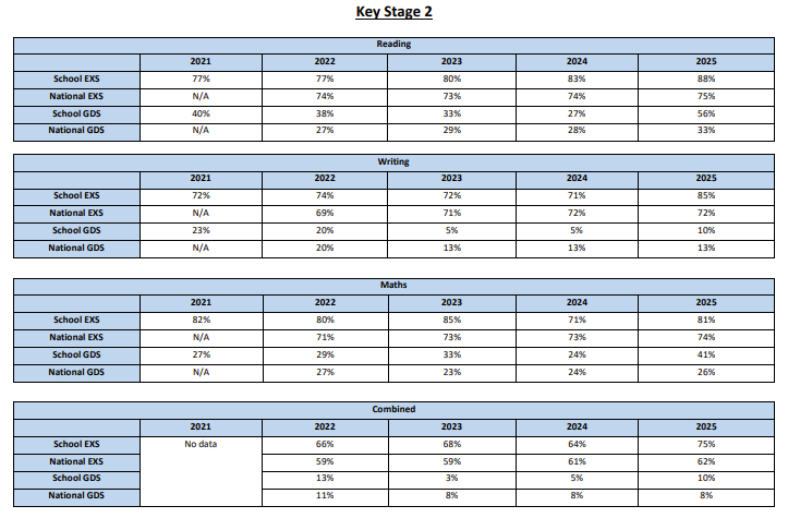 GDS - The percentage of pupils who have achieved above the expected standard.